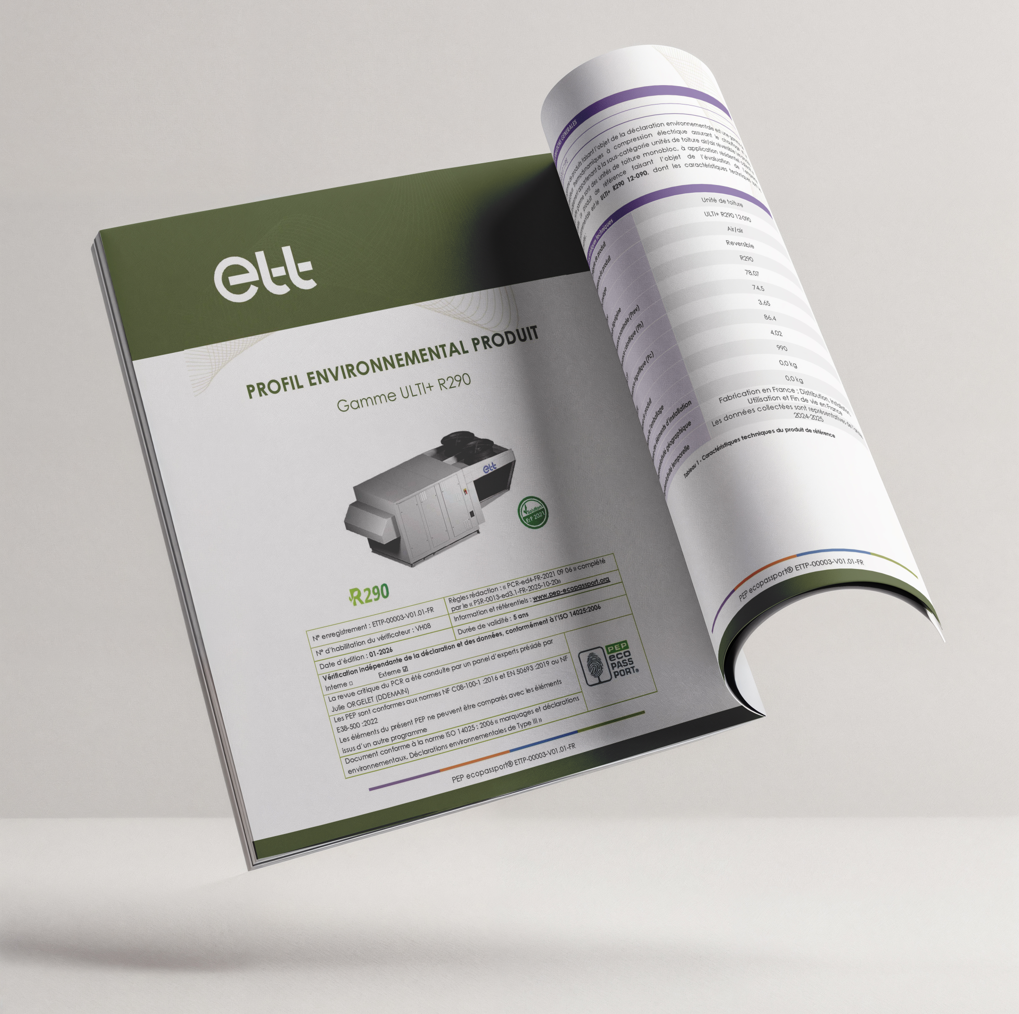 Chez ETT, nous croyons que la performance technique doit rimer avec responsabilité environnementale. C’est pourquoi nous sommes ravis de vous annoncer la sortie officielle de la fiche PEP (Profil Environnemental Produit) pour notre gamme ULTI+ R290 – un document clé pour évaluer l’impact écologique de notre solution et répondre aux exigences des labels d’éco-construction (RE 2020, HQE, BREEAM, E+C-…).